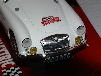 Este MG A vem com os limpa-pára-brisas e os retrovisores tanto exterior como interior, cromados. Também as janelas triangulares solidárias com a estrutura do pára-brisas, não foram esquecidas.
