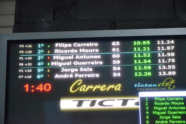 E sem surpresa, a vitória acabaria por pertencer a Filipe Carreiro, mas o segundo lugar representou a continuidade da pressão exercida por Miguel Guerreiro a Ricardo Moura, apesar de terminada a prova com ambos a registar 162 voltas. Brilhante e empolgante este final por parte desta dupla que não se rogou a esforços, um para se impôr e o outro para se defender. Miguel Antunes viria a terminar a prova no quarto lugar e Jorge Seia acabaria por assegurar a quinta posição sobre André Ferreira, mantendo a volta de avanço que havia conquistado na calha anterior