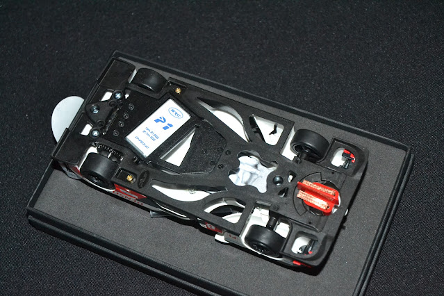 De inegável qualidade, vem a equipar esta preciosidade, um chassis com alguma dureza e óptimo para pistas tipo "Carrera" e chama a atenção, o seu berço para montar um motor em posição anglewinder, algo contrário às actuais tendências, que apostam para equipar este tipo de carros, em berços para motor em linha.