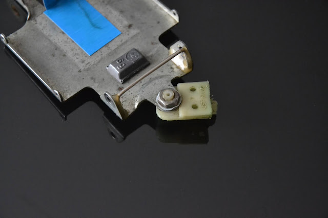 A imagem inferior permite ver-se também o reforço dos suportes do eixo frontal, bem como a fita onde assenta o motor. Acabaria ainda por lastrar o conjunto com um acréscimo de 5 gramas em posição central avançada, o que beneficiaria a optimização do comportamento em curva, ao mesmo tempo que procedia ao aligeiramento do conjunto das rodas frontais. Este procedimento retiraria o excedente de peso nas extremidades, em largura, enquanto centrava o peso extra na parte mais central e avançada do chassis.